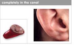 深耳道型助聽器 1990年代進入市場,體積很小,有人稱之為「隱形」助聽器。整個機體放入外耳道,使得麥克風可以利用耳廓收集聲音,且因聲孔離耳膜很近,所以聲音的傳輸更有效率,且外觀美觀,但因為機器較小故功率輸出較小,適用輕中度聽力損失。 |